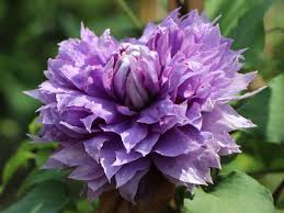 Clematis 'vyvyan pennell' is a striking viticella cultivar that enjoys a sunny position.