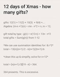 How Many Total Gifts In The 12 Days Of Christmas - Monday Puzzle The 12 Days Of Christmas Song How Many Gifts Are Given In Total Mind Your Decisions : Maybe you would like to learn more about one of these?
